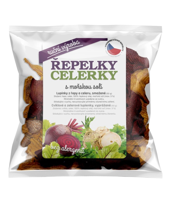řepa, celer, 100% řepkový olej, mořská sůl (max. 3%)